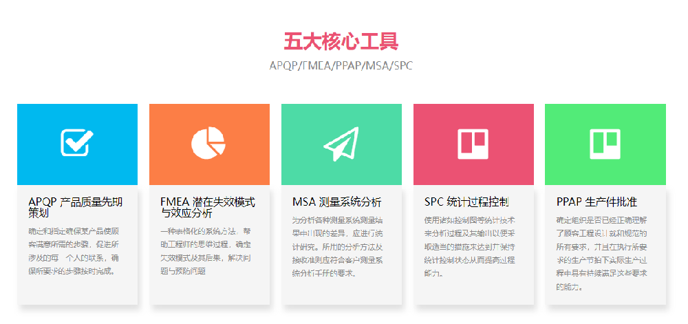 IATF16949五大工具分別是:統(tǒng)計(jì)過(guò)程控制(SPC);測(cè)量系統(tǒng)分析(MSA);失效模式和效果分···